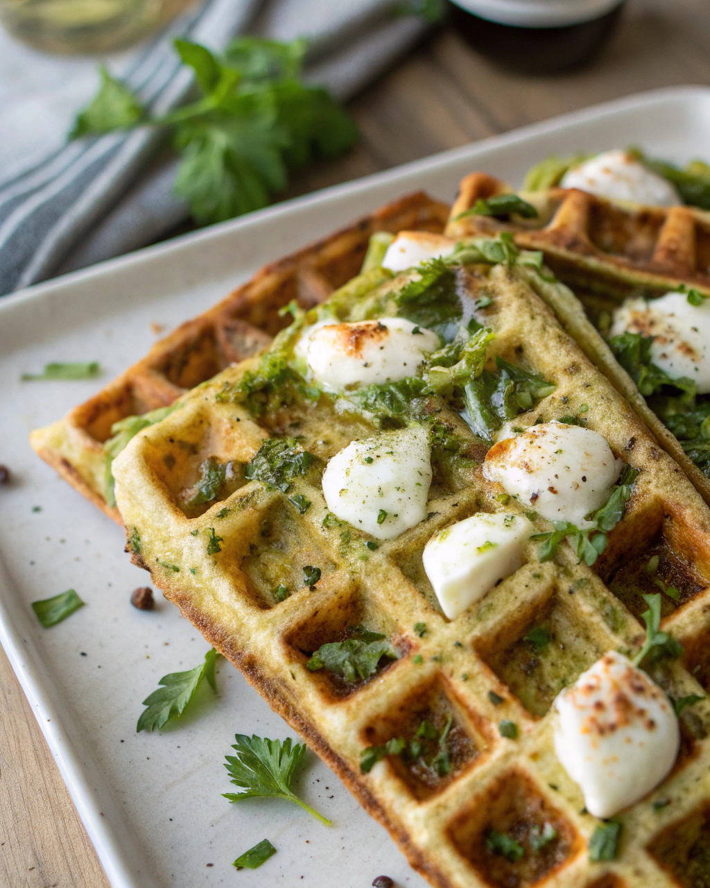 Gaufres salées à la courgette, ail, persil et mozzarella