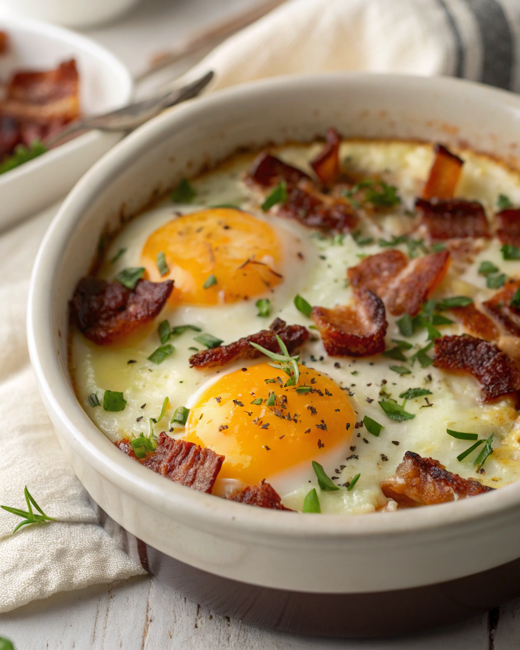 Conclusion : Ces œufs cocotte au fromage et bacon sont une recette simple à réaliser, pleine de chaleur et de saveurs, parfaite pour réunir la famille autour d’un repas plein de douceur et de réconfort.