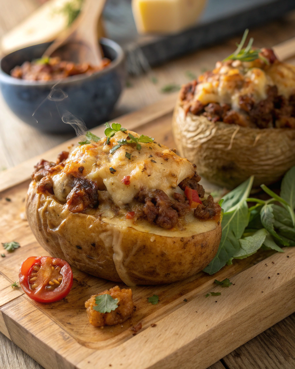 Pommes de Terre Farcies à la Viande Hachée Gratinée au Fromage